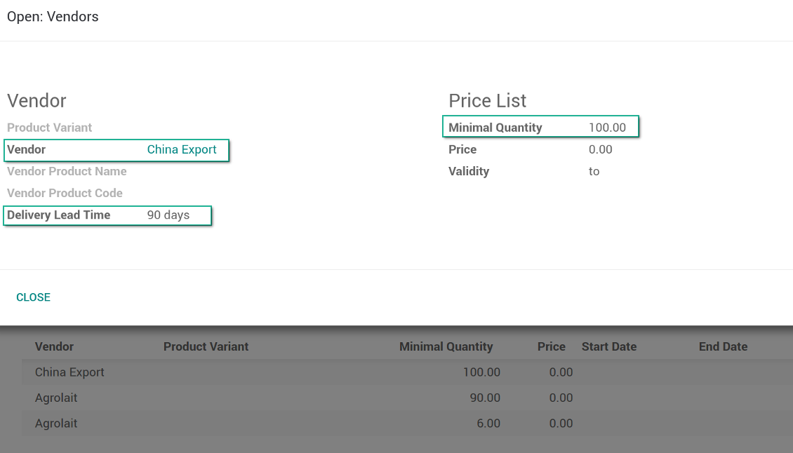 You may select not only a vendor company, but also delivery time and a minimum lot