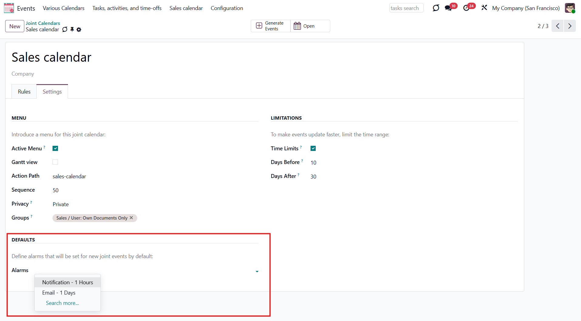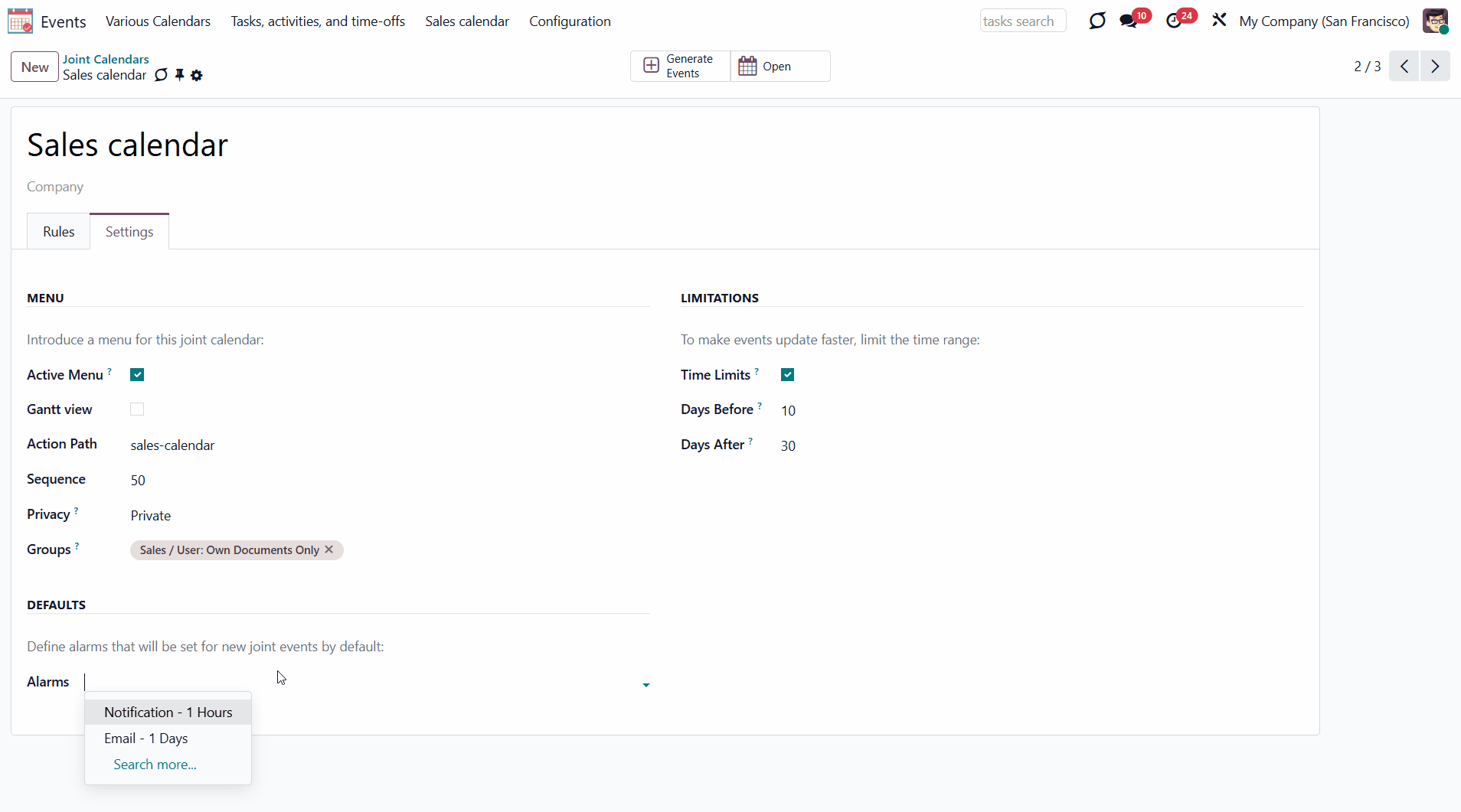 Configuring Odoo Shared Calendars