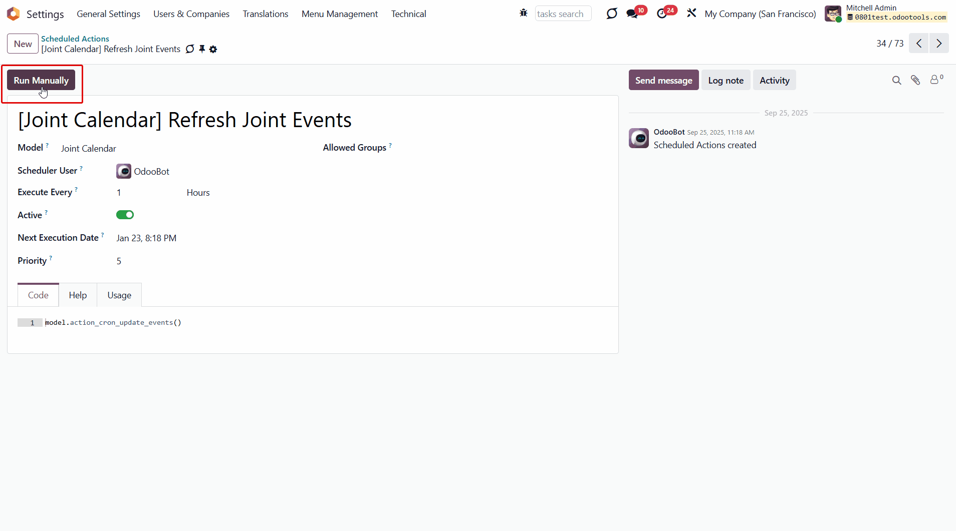 Refreshing Joint Events & Odoo Scheduled Jobs