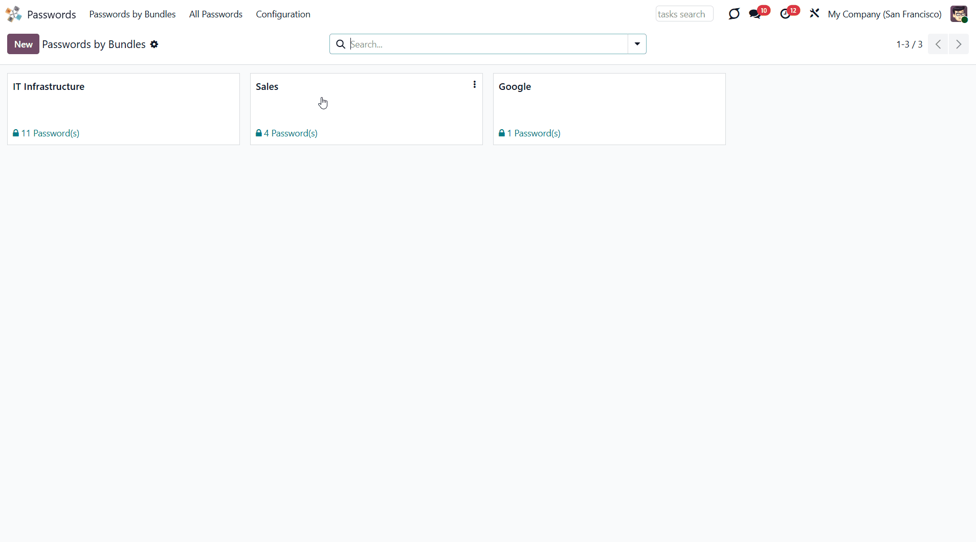 A password bundle (or password vault) is a set of passwords organized by functional area or by the groups that have access to them. You can create a password vault for the sales team, product managers, technical workers, or any other user group. Anyone can make a bundle for themselves or several employees. While creating a vault, you can also manage a user's access rights and assign someone to update passwords. The creator of a bundle is always its administrator and has access to all its passwords.