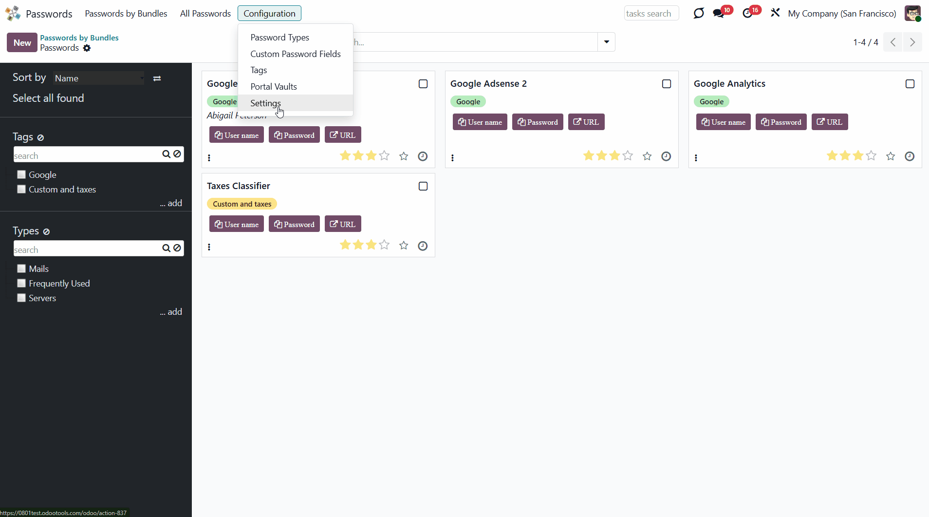 Password Manager is an Odoo app that helps you securely store passwords and maintain an efficient storage structure.